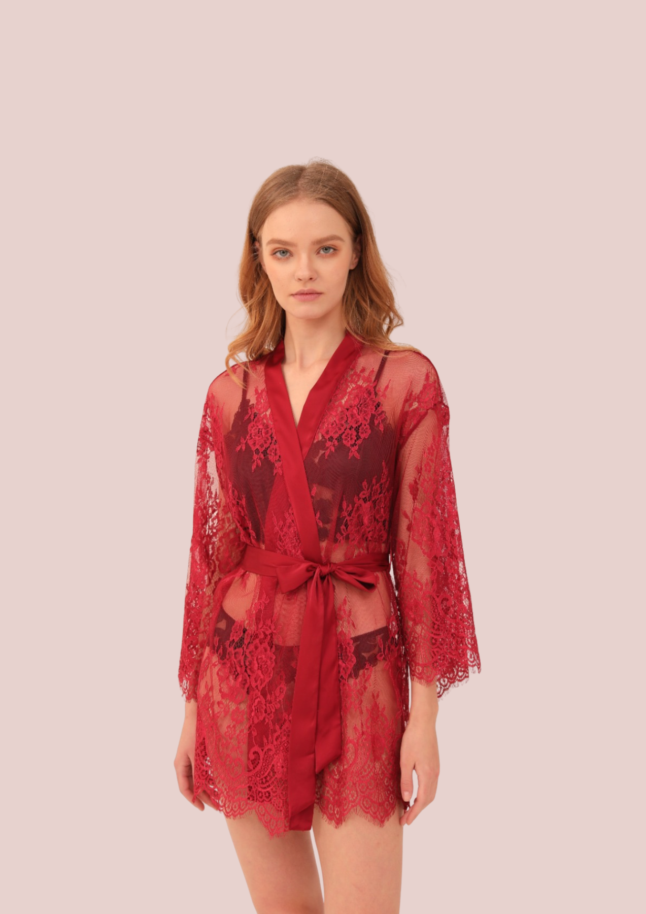 Envuélvete en lujo con este kimono de encaje que transforma tus momentos de descanso en una experiencia de puro glamour. La delicada combinación de encaje transparente y satén suave crea una prenda versátil que funciona tanto para relajarte en casa como para sorprender en la intimidad. Cada detalle ha sido cuidadosamente pensado para realzar tu feminidad y confianza. Perfecta para quien busca sofisticación sin renunciar al confort, esta bata kimono es la inversión ideal en prendas que te hacen sentir extraordinaria cada día.