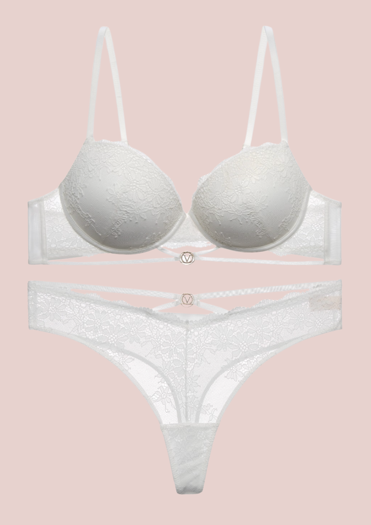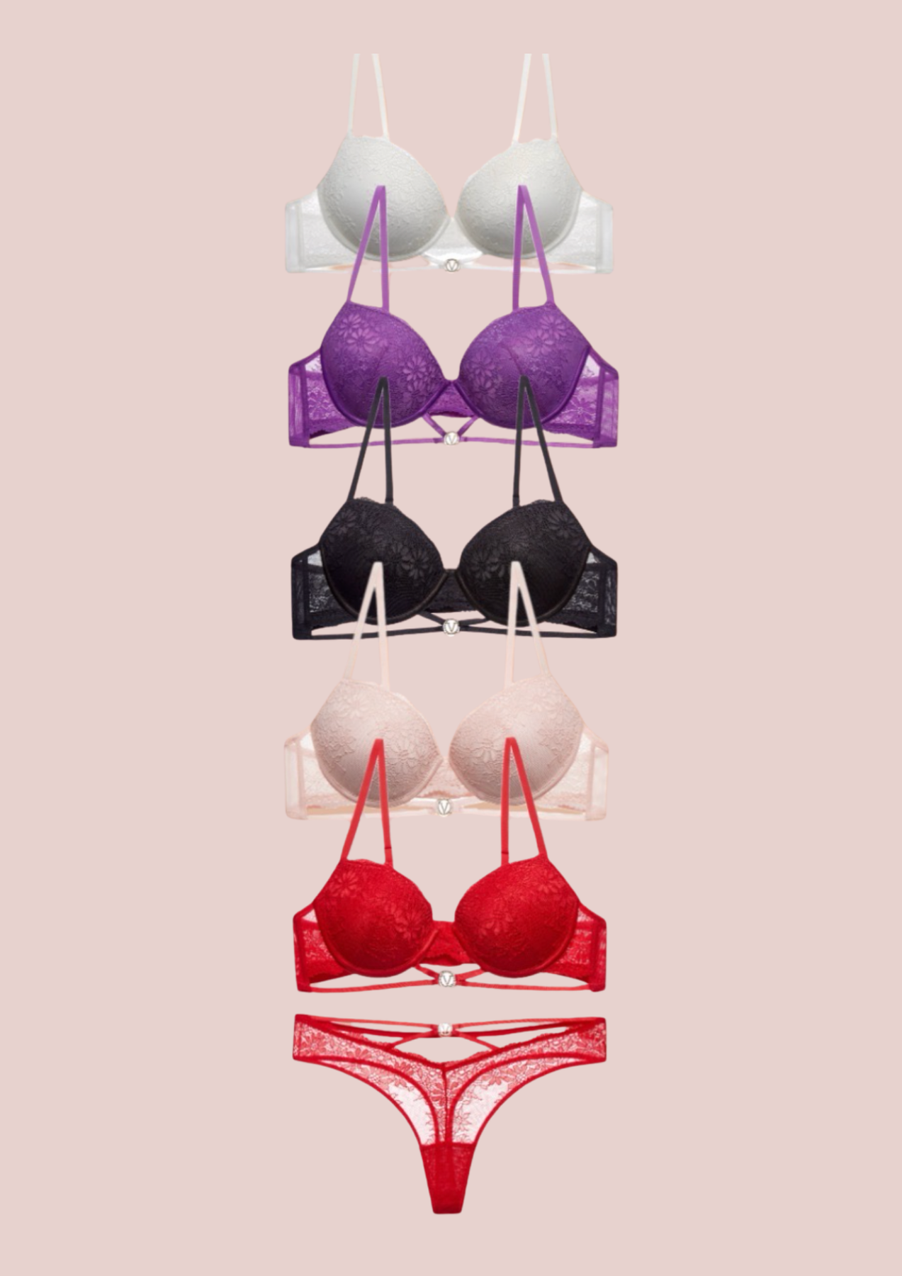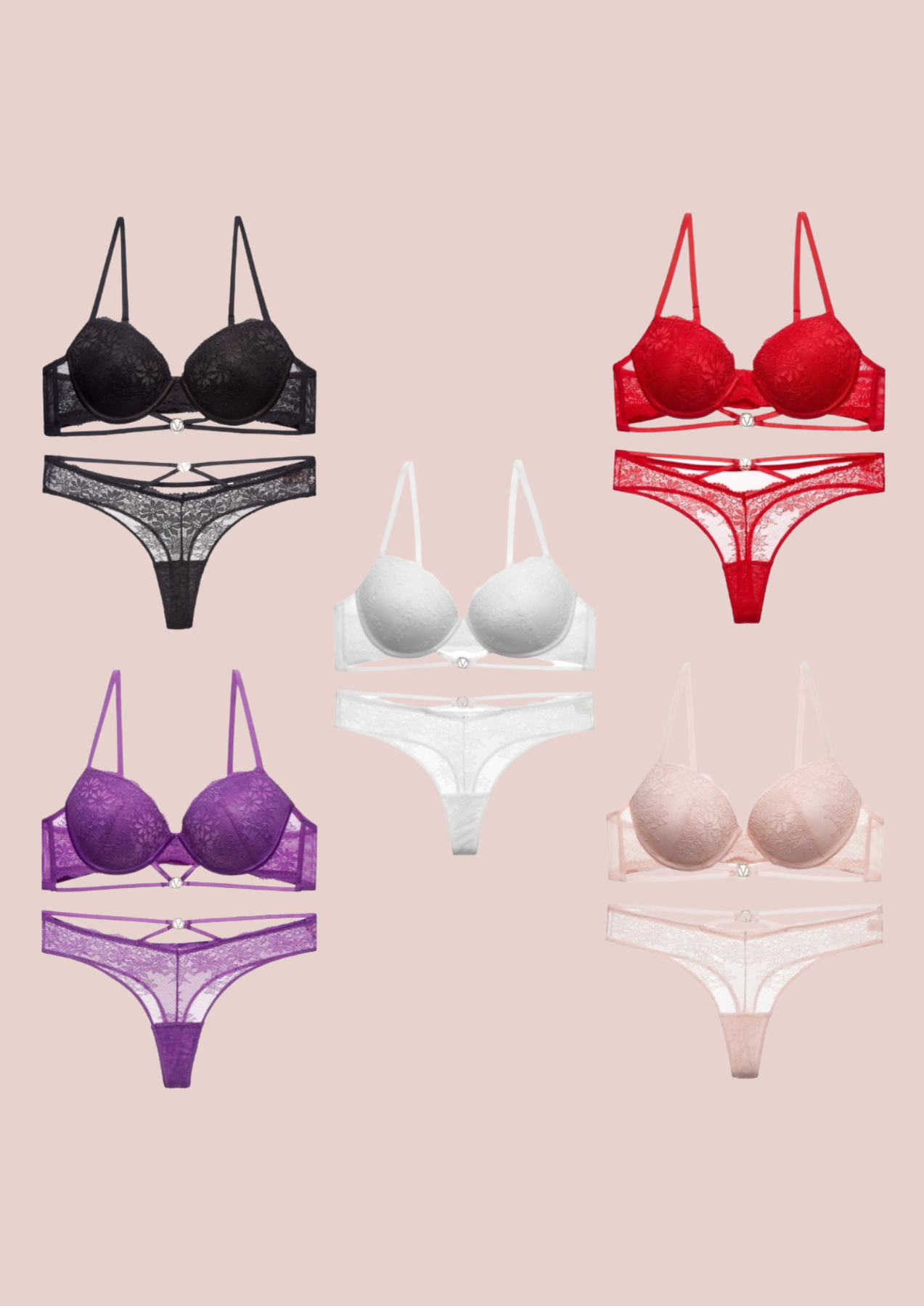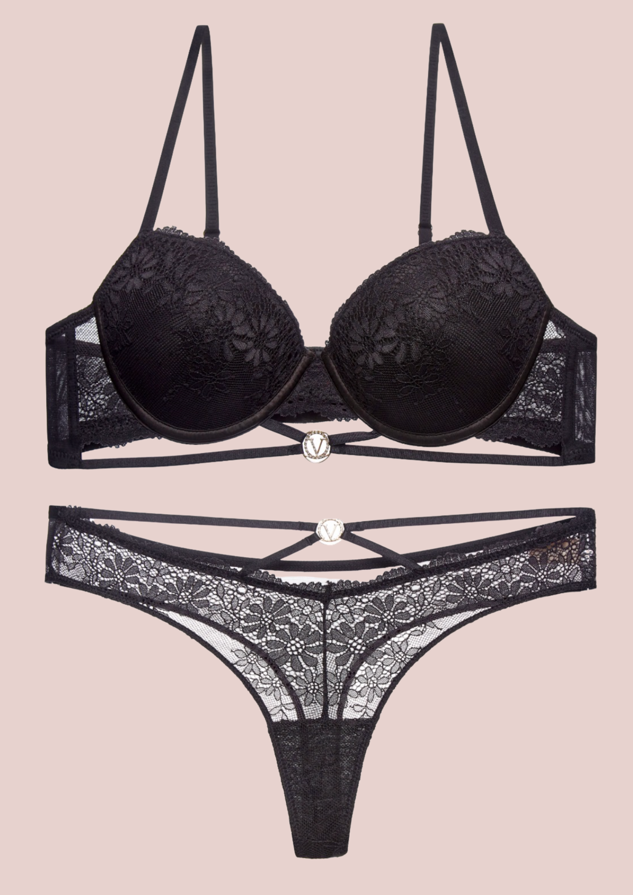 Conjunto Lencero Encaje Copa-C Sensualidad arquitectónica en cada detalle. Este set de dos piezas combina encaje floral delicado con un diseño de doble banda elástica y herrajes dorados que crean un efecto visual sofisticado y moderno. Las copas prehormadas con aros ofrecen un push-up natural y realzador, mientras que los tirantes regulables garantizan un ajuste perfecto y cómodo. El cierre de corchetes en la espalda asegura estabilidad durante todo el día. Ideal para quien busca lencería con personalidad, lujo y soporte excepcional en cada uso.