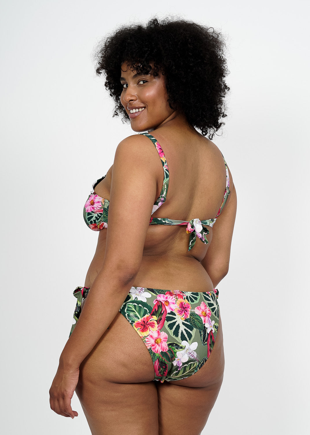 La braga de bikini con estampado Coron es una prenda cómoda e imprescindible en verano. Presenta un estampado único de flores muy elegante, con pernera de corte alto y tiras largas anudadas en cada lateral de la cadera. Es bastante cubierta en la parte trasera, aportando seguridad y sujeción. El forro interior es color liso.