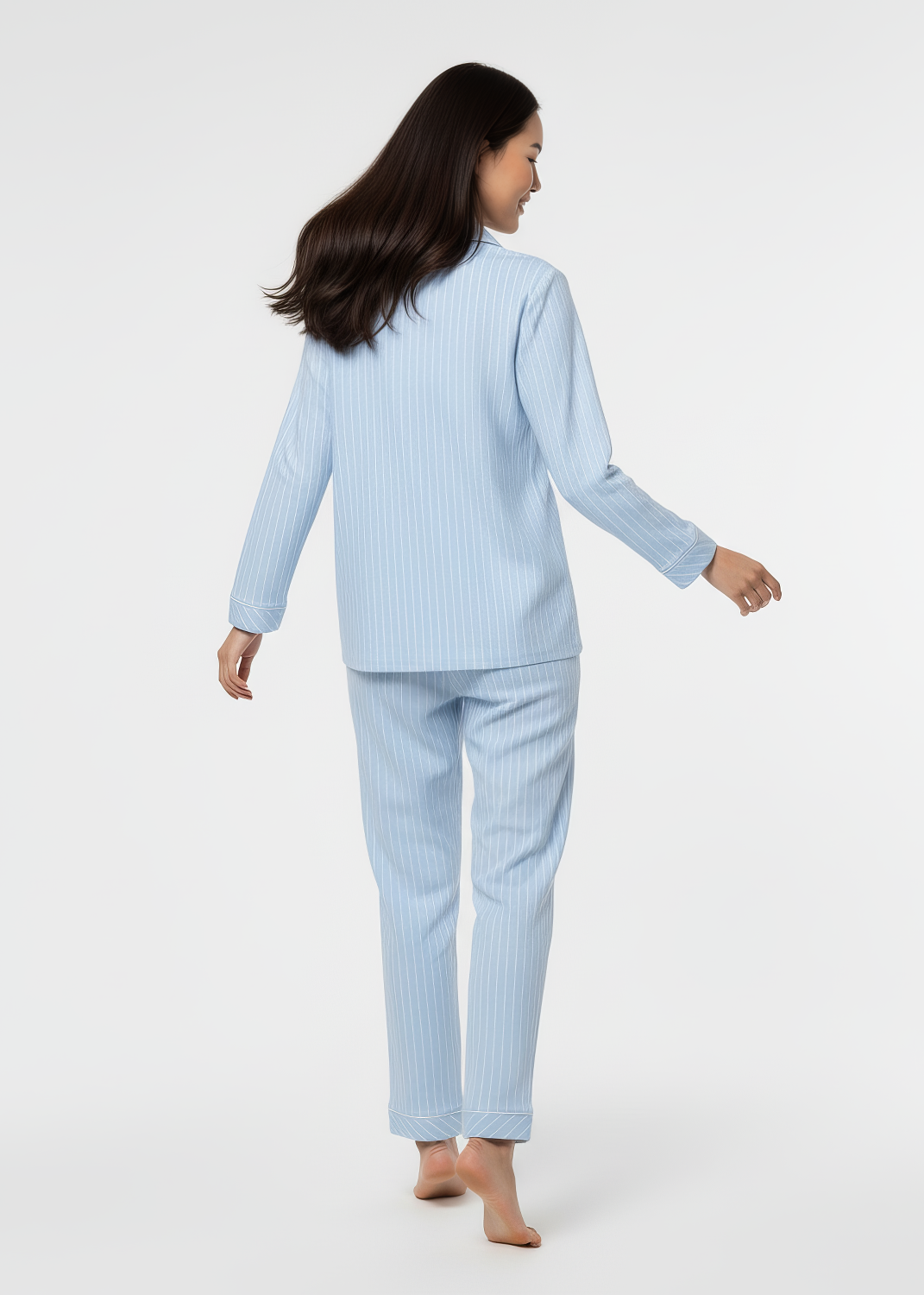 Pijama Largo Perchado Rayas Azul Empolvado