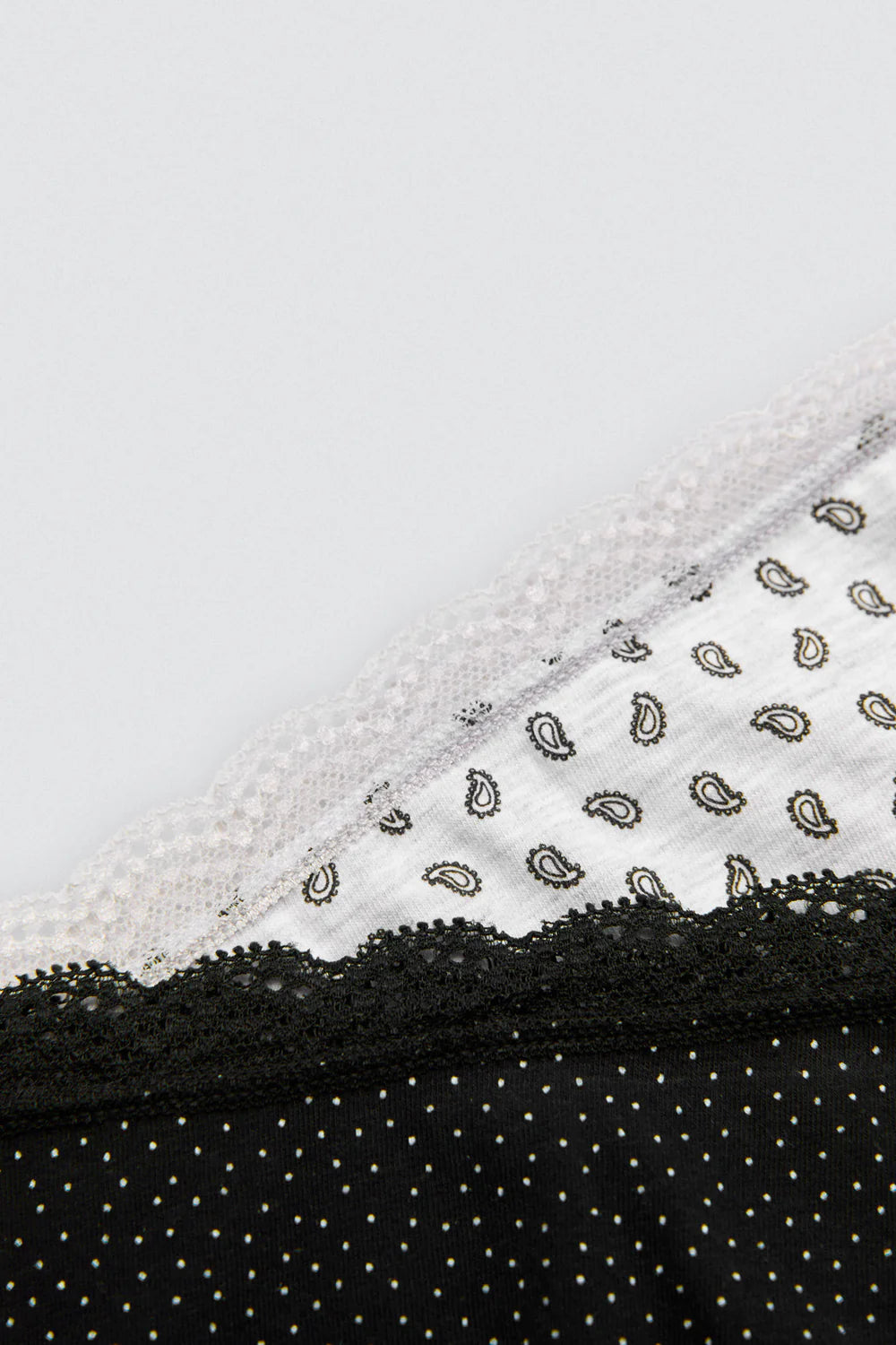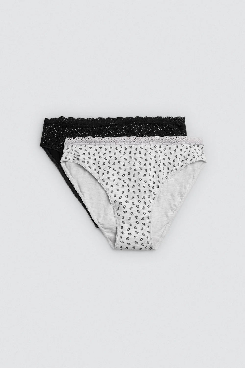 Descubre el confort y la feminidad con el pack de 2 bragas midi Fantasía. Confeccionadas en algodón natural, ofrecen un tacto suave, gran transpirabilidad y un ajuste cómodo que favorece el día a día. Cada braga presenta un estampado diferente y un delicado detalle de puntilla en el borde superior, combinando funcionalidad con estilo elegante. Perfectas para quienes buscan ropa íntima práctica sin renunciar al toque femenino. Además, el pack doble te garantiza variedad y durabilidad para tu ropa interior diaria. Por motivos de higiene, este producto no admite devoluciones.