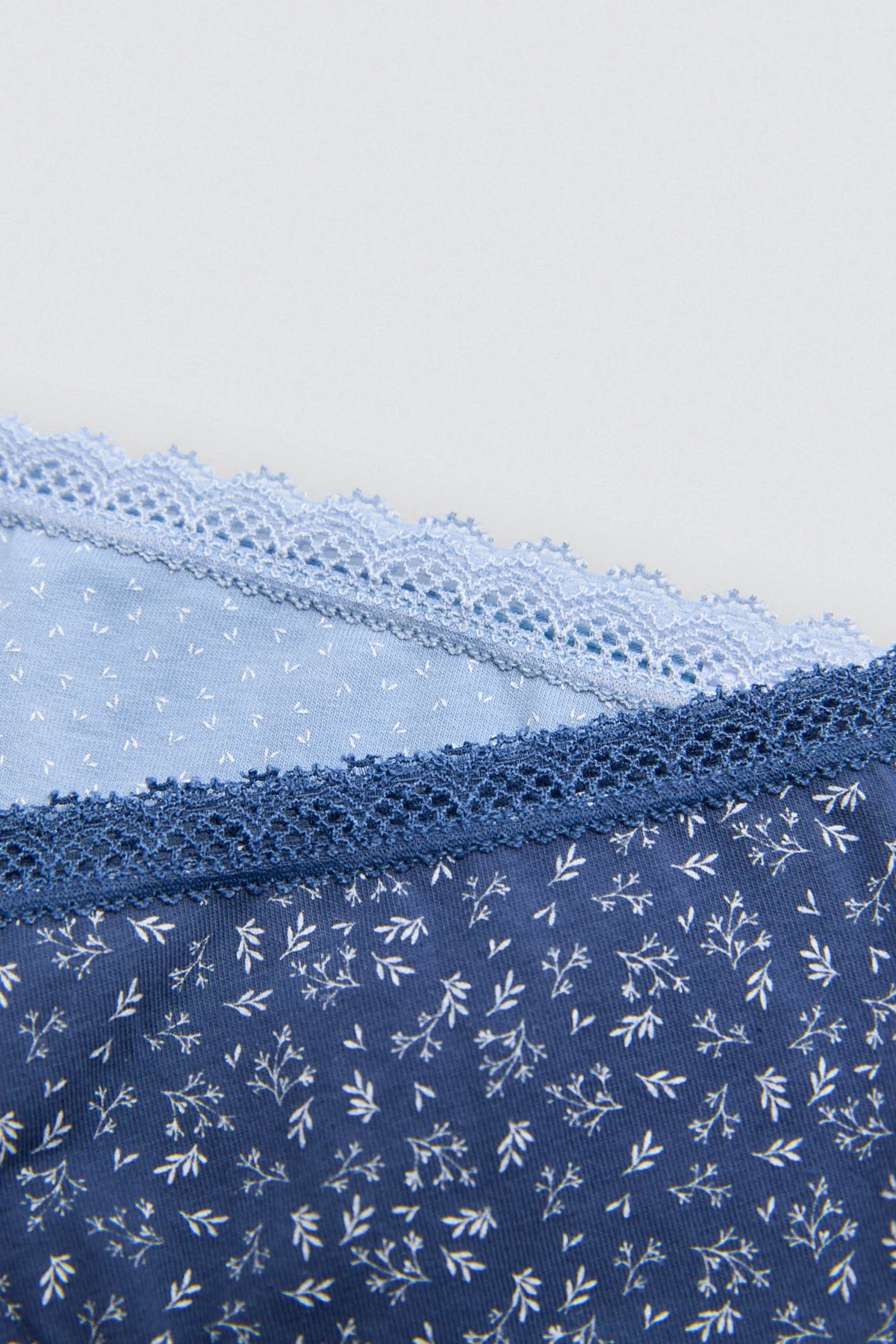 Este pack de 2 bragas midi en algodón natural ofrece suavidad y comodidad con un diseño femenino y práctico. Sus estampados florales en tonos azules y el delicado remate de puntilla aportan estilo, mientras que el corte midi asegura mayor cobertura y un ajuste favorecedor. Ideales para el día a día, combinan transpirabilidad y adaptabilidad para que te sientas cómoda y segura. Por motivos de higiene, este producto no admite devoluciones.