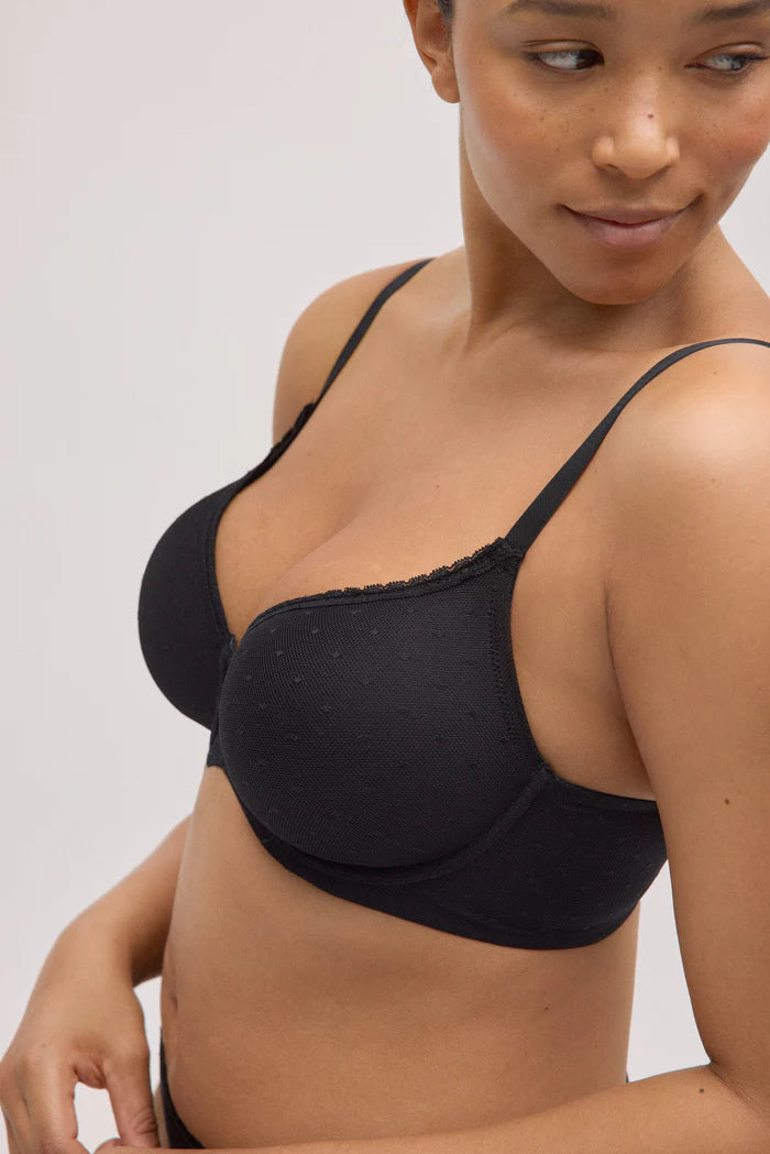 Este sujetador con aro y relleno de Rose Ysabel Mora combina soporte y comodidad para copa C. Su tejido de plumeti aporta un toque delicado y elegante, mientras que la mezcla de poliamida y elastano garantiza un ajuste flexible y duradero. Perfecto para realzar tu figura con estilo y confort en color plumeti negro.