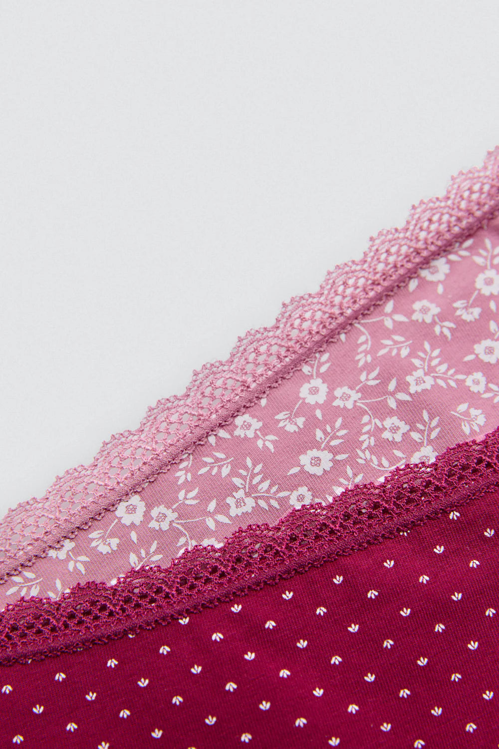 Este pack de 2 bragas altas combina comodidad y estilo con algodón natural que proporciona frescura y suavidad durante todo el día. Su cintura alta ofrece una sujeción envolvente que realza la silueta, mientras los delicados detalles de puntilla y los estampados femeninos en tonos rosados aportan un toque romántico. Perfectas para el uso diario, estas braguitas garantizan ajuste, confort y un diseño elegante, todo en un práctico pack doble. Por higiene, no se aceptan devoluciones.