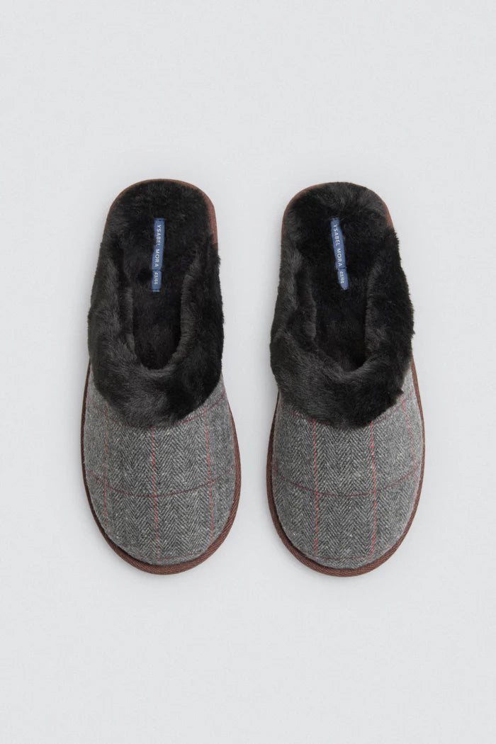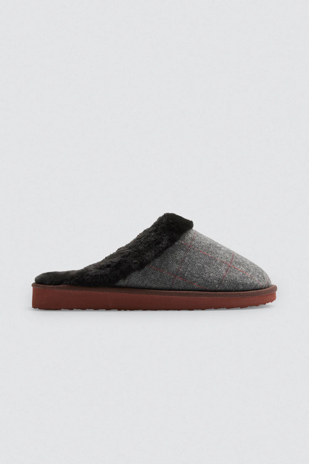 Disfruta de la calidez y el estilo con estas zapatillas de casa para hombre, diseñadas con un tejido de cuadros clásico y un suave forro de pelo que mantiene tus pies confortables todo el día. Su suela robusta de EVA garantiza durabilidad y soporte, mientras que el diseño en gris y negro con detalles en rojo aporta un toque elegante y atemporal. Perfectas para el invierno, combinan comodidad y sofisticación para el uso diario en casa.