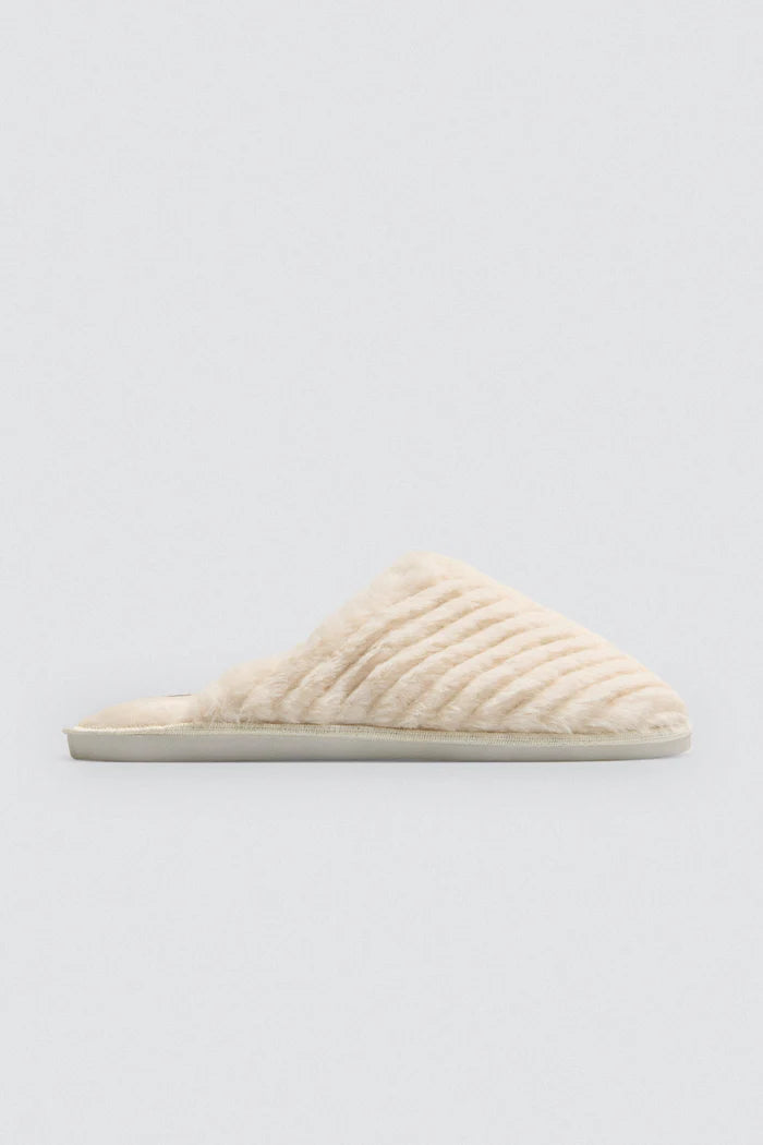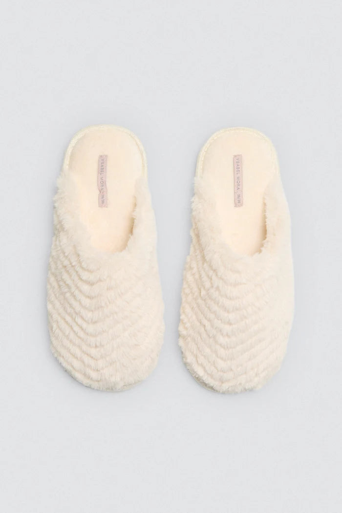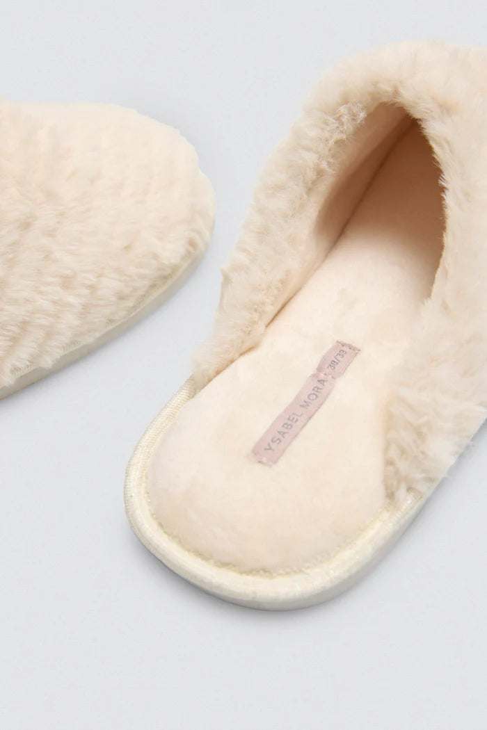 Disfruta del máximo confort en casa con esta zapatilla para mujer en tono beige. Su diseño abierto y suave pelo efecto canalé en exterior e interior mantiene tus pies cálidos y cómodos, ideal para tus momentos de relax. Ligera y elegante, combina calidez y estilo en cada paso. Fabricada en 100% poliéster con suela de TPR, ofrece durabilidad y comodidad día tras día.