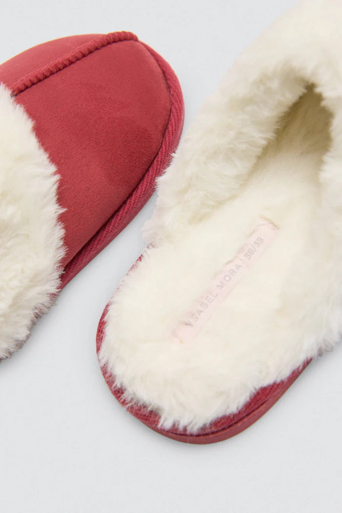 Disfruta de la máxima calidez y confort en casa con estas zapatillas de mujer en rojo, diseñadas con un exterior suave efecto ante y un forro interior de pelo que envuelve tus pies en suavidad. Su borde de pelo añade un toque elegante mientras mantiene el calor, ideal para los días fríos de invierno. Su suela de TPR garantiza durabilidad y comodidad al caminar, mientras que su diseño acogedor y en tonos naturales combina fácilmente con cualquier conjunto casual en casa. Perfectas para cuidar y mimar tus pies con estilo y confort.