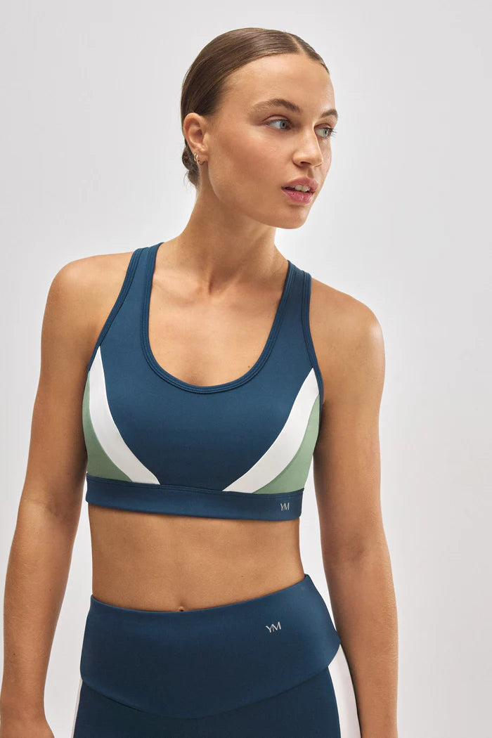 Este top deportivo tricolor en tonos verde, azul y blanco ofrece un ajuste cómodo y una sujeción media ideal para actividades de impacto moderado como yoga, pilates o entrenamiento funcional. Su tejido transpirable mantiene la frescura durante el ejercicio, mientras que los tirantes de espalda nadadora garantizan libertad total de movimiento. Además, incorpora un relleno de foam extraíble que permite adaptar el soporte a tus necesidades, combinando estilo y rendimiento para que te sientas segura y cómoda en cada entrenamiento.